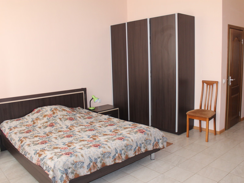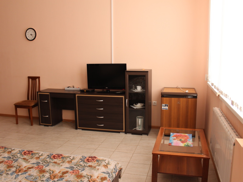 Площадь номера - 20 кв.м. 1 осн. место. 1 доп. место. Мебель: вешалка, зеркало, комод, кровать двуспальная, прикроватные тумбочки, столик туалетный, стул, шкаф-купе. Оборудование: набор посуды, сплит-система, телевизор ЖК, холодильник, чайный набор посуды. Санузел: с душем (поддон), туалетные принадлежности. Сервис: Wi-Fi бесплатно, смена полотенец, смена постельного белья, уборка номера.